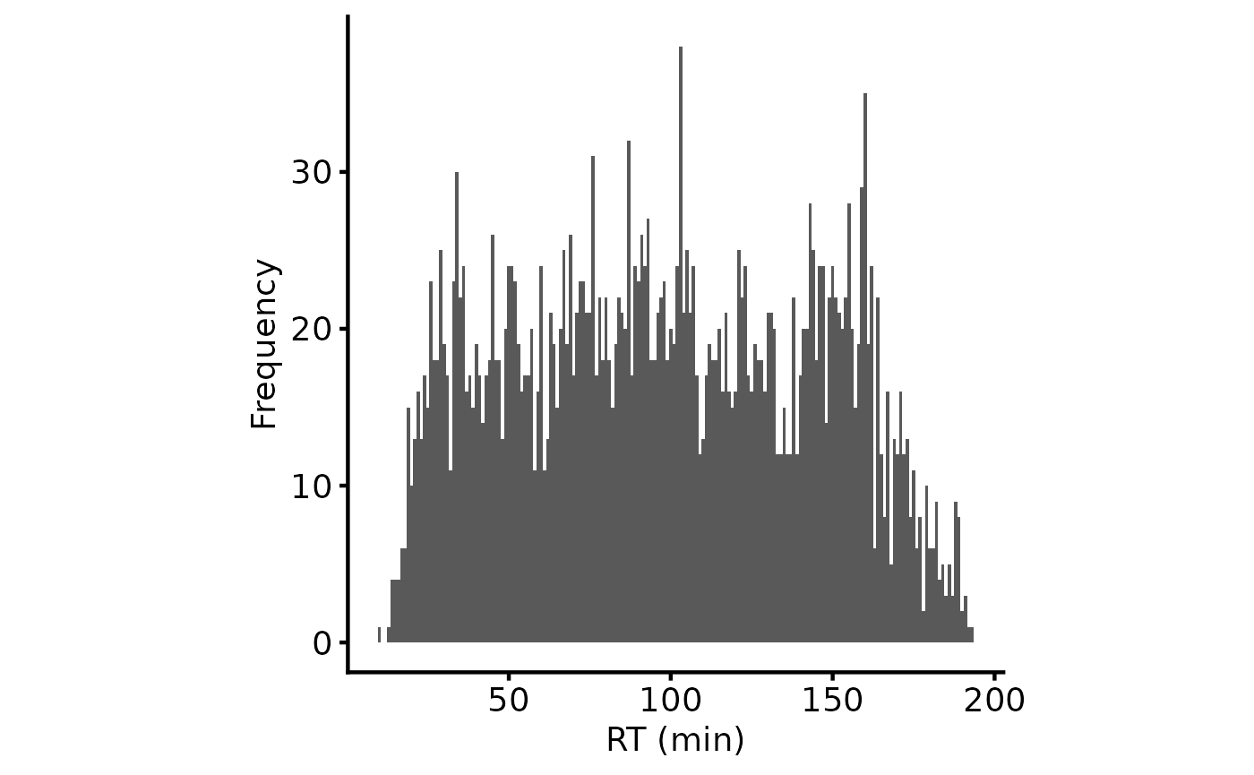 plot_rt_dist(lfq_qf[['peptides_raw']])